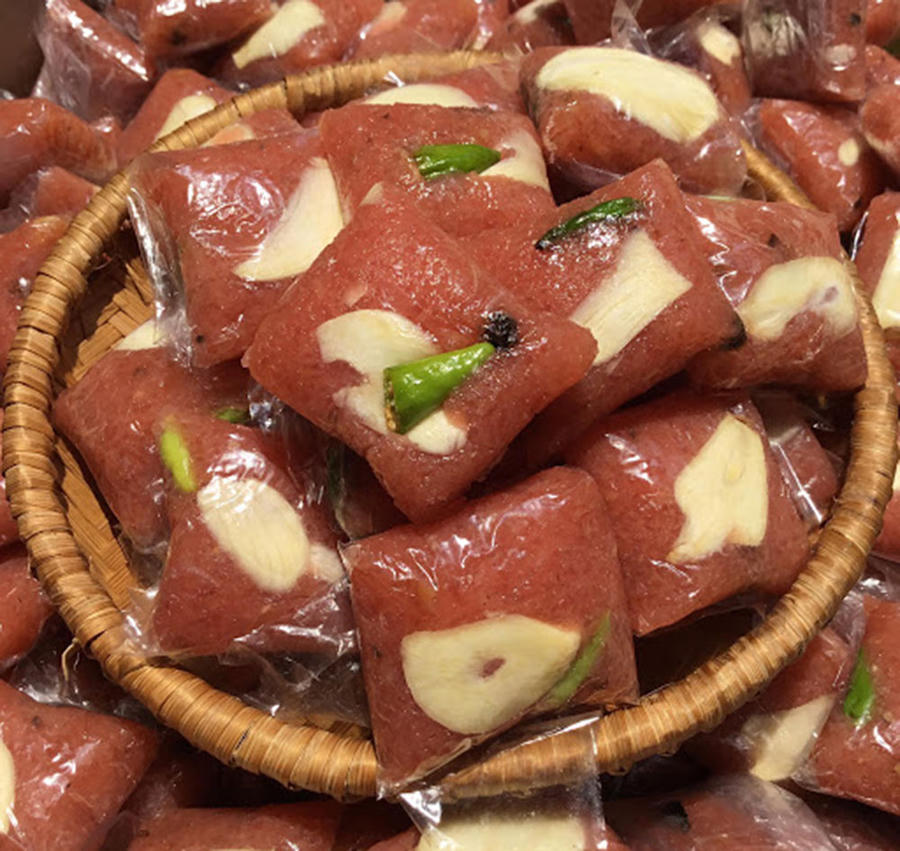 Nem Lai Vung từ lâu đã nổi tiếng với hương vị ngon đặc biệt. Thong thả bóc từng lớp lá chuối, chắc chắn chúng ta sẽ không thể cầm lòng trước miếng nem tươi đỏ hồng điểm xuyết những hạt tiêu đen, vài lát tỏi trắng mỏng.