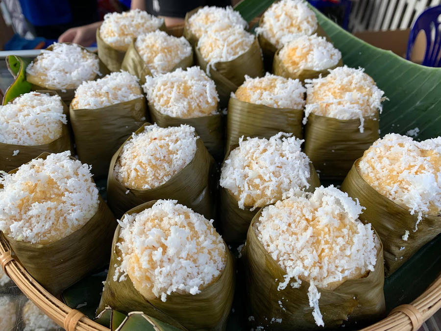 Chừng một tiếng đồng hồ, theo hơi nóng bốc ra từ nắp là mùi thơm ngào ngạt gọi mời lan tỏa khắp xung quanh. Bóc gói lá ra, bánh thốt nốt có màu vàng sáp trông rất bắt mắt.