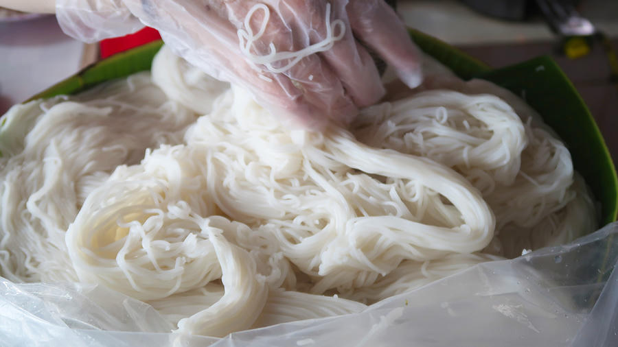 Để làm nên một bát bún nước lèo Sóc Trăng ngon nhất định không thể thiếu những sợi bún trắng vừa mềm mát nhưng vẫn đủ độ dai. Bún được làm từ loại gạo dẻo, cụ thể là gạo mùa đã được ngâm nước qua đêm rồi mới đem xay trong cối đá dạng bột nước để tạo thành những sợi bún trong, dẻo thơm.