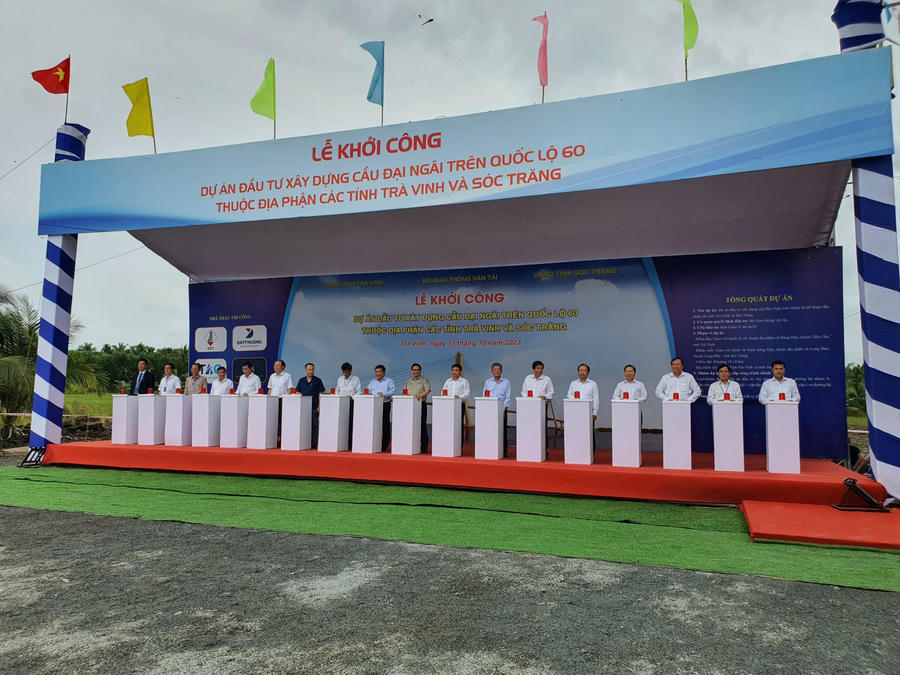 Sáng 15/10, cầu Đại Ngãi - cây cầu cuối cùng trong hệ thống 4 cầu lớn kết nối Sóc Trăng - Trà Vinh đã được tổ chức khởi công. Thủ tướng Chính phủ Phạm Minh Chính tham dự và khích lệ tinh thần các cơ quan, tổ chức hữu quan.
