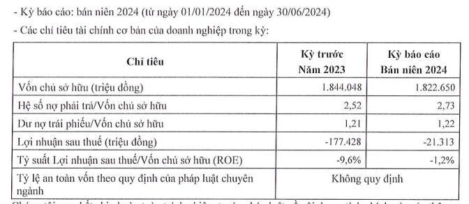 Đáng chú ý, nửa đầu năm 2024, Công ty ghi nhận lợi nhuận sau thuế âm 21,3 tỷ đồng.