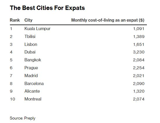 Theo nghiên cứu của công ty Preply có trụ sở ở Mỹ, Kuala Lumpur là thành phố đáng sống nhất cho người nước ngoài. Nhờ thuế và chi phí nhà ở thấp, tại Malaysia, người nước ngoài chỉ phải tiêu tốn khoảng 1.091 USD/tháng.