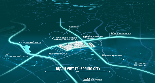 Nằm ở vị trí “lõi” trung tâm TP Việt Trì, dự án Việt Trì Spring City tọa lạc tại nút giao giữa 2 trục đường chính Nguyễn Tất Thành và Trường Chinh, đối diện Khu quần thể du lịch, sân golf, resort và khách sạn 5 sao rộng 250 ha. Tương lai, khu đô thị Việt Trì Spring City chính là cửa ngõ kết nối đón dòng khách từ khu di tích cấp quốc Gia Đền Hùng về khu du lịch Bạch Hạc Bến Gót, với dòng khách lưu trú ổn định và tăng trưởng theo năm.