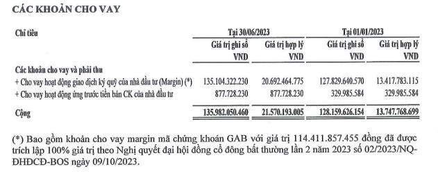 Về ý kiến ngoại trừ liên quan đến số dư khoản cho vay, gồm khoản cho vay ký quỹ mã chứng khoán GAB với giá trị hơn 114,4 tỷ đồng, đơn vị kiểm toán không đánh giá được tính hiện hữu khoản vay này tại 01/01/2023 và 30/06/2023.