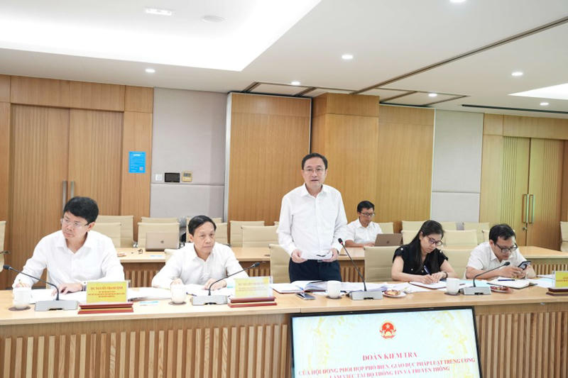 Ngày 3/8, Đoàn kiểm tra của Hội đồng Phối hợp phổ biến, giáo dục pháp luật Trung ương do Thứ trưởng Bộ Tư pháp Nguyễn Thanh Tịnh, Phó Chủ tịch Hội đồng làm Trưởng đoàn đã làm việc với Bộ Thông tin và truyền thông (TTTT).