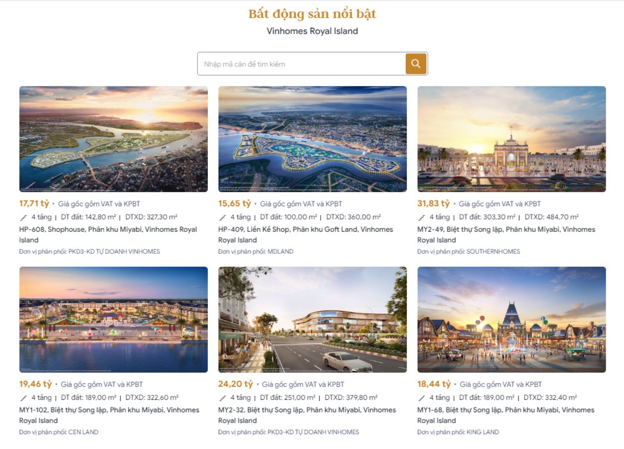 Để phục vụ khách hàng và nhà đầu tư tìm hiểu, tra cứu thông tin chính xác, Vinhomes Royal Island chính thức niêm yết giá và chính sách trên Vinhomes Market (https://market.vinhomes.vn) từ 21/3/2024.