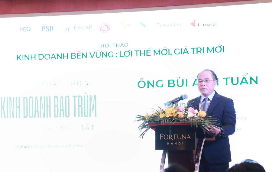 Chia sẻ tại Hội thảo, ông Bùi Anh Tuấn – Cục trưởng Cục Phát triển DNTN và KTTT (Bộ Tài chính) cho biết, khu vực kinh tế tư nhân đã giải quyết việc làm cho khoảng 82% lực lượng lao động, đóng góp khoảng 50% GDP và hơn 30% tổng thu ngân sách Nhà nước. Tuy nhiên, DN hiện nay cũng đang đối mặt với nhiều khó khăn và thách thức mới: Biến đổi khí hậu diễn biến ngày càng phức tạp; Yêu cầu xanh hóa chuỗi cung ứng toàn cầu ngày càng rõ nét; Các tiêu chuẩn về môi trường, xã hội và quản trị (ESG) dần trở thành điều kiện để DN tiếp cận thị trường, vốn, đối tác và tham gia chuỗi cung ứng. Trong bối cảnh đó, kinh doanh bền vững không còn là lựa chọn mang tính tự nguyện, mà đã trở thành yêu cầu tất yếu để DN tồn tại, phát triển và nâng cao năng lực cạnh tranh.