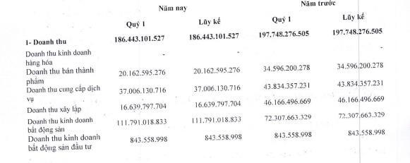 Theo thuyết minh của DIG, doanh thu kinh doanh bất động sản mang về 111,7 tỷ đồng, doanh thu cung cấp dịch vụ mang lại 37 tỷ đồng.