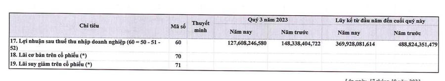 Về kết quả kinh doanh, quý III/2023, SCS ghi nhận 171,5 tỷ đồng doanh thu thuần và 127,6 tỷ đồng lợi nhuận sau thuế, cùng giảm 14% so với cùng kỳ năm trước.