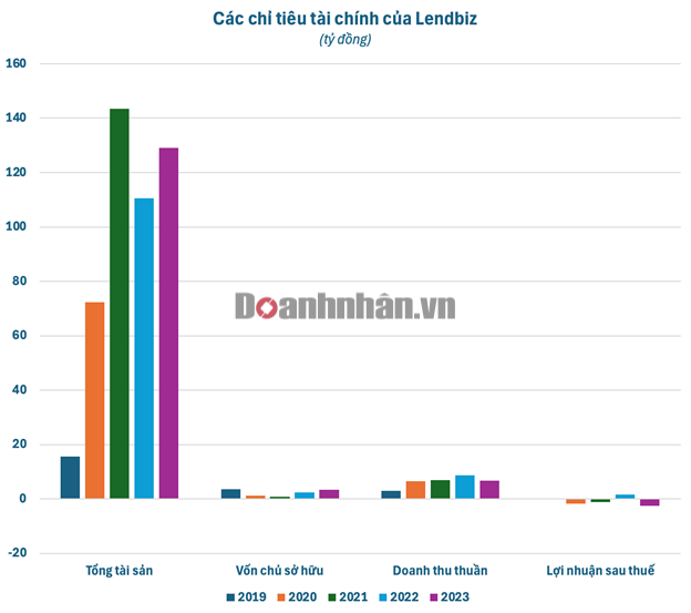 Đáng chú ý, vốn chủ sở hữu của Lendbiz vào cuối năm 2023 chỉ còn 3,3 tỷ đồng, chủ yếu do nhiều năm kinh doanh thua lỗ. Năm 2023, doanh nghiệp này lỗ gần 2,6 tỷ đồng, sâu nhất trong nhiều năm trở lại đây. Trong 5 năm gần nhất, Lendbiz chỉ có lãi duy nhất năm 2022 với lợi nhuận ròng 1,6 tỷ đồng.