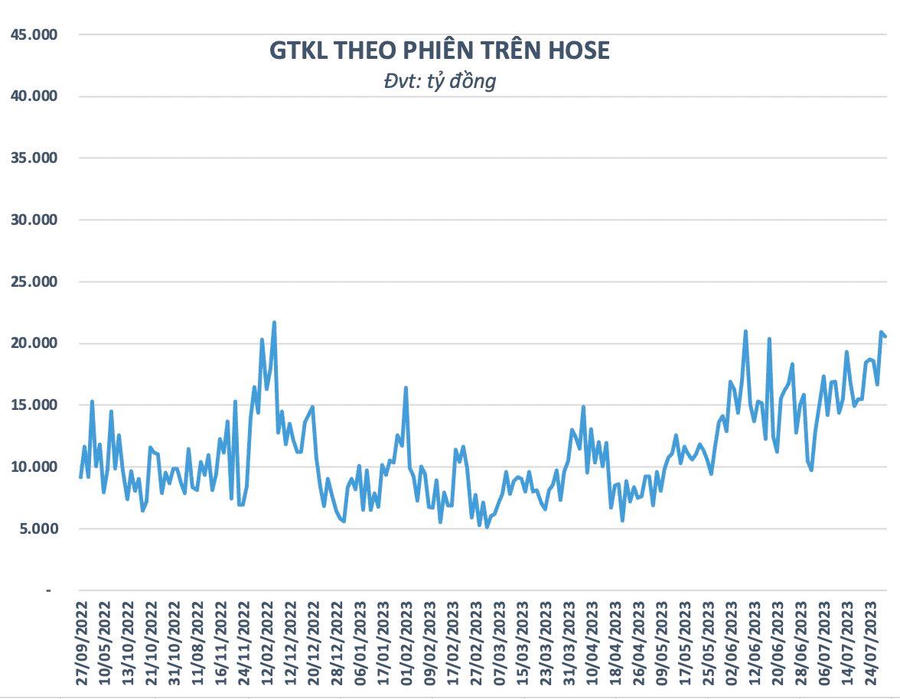 Bên cạnh đó, khi VN-Index càng lên cao và xa định giá thực, sẽ cần một lượng tiền dồi dào hơn. Nhiều kỳ vọng cho rằng thị trường sẽ lên 1.400 -1.500 điểm nhưng điều này không dễ. Bởi để tăng mạnh về lại mức điểm trên, ước tính cần thêm 30% lượng tiền “bơm” vào thị trường, tương đương xấp xỉ 42.000 tỷ/phiên.