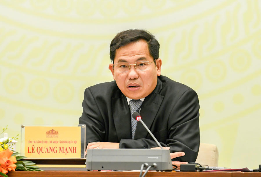 Chiều 3/4, Tổng Thư ký Quốc hội, Chủ nhiệm Văn phòng Quốc hội Lê Quang Mạnh chủ trì Họp báo về dự kiến chương trình Kỳ họp thứ Nhất, Quốc hội khóa XVI.