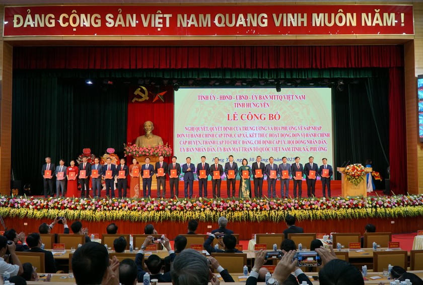 Trong khuôn khổ buổi lễ, các quyết định về tổ chức đảng, HĐND, UBND và MTTQ Việt Nam tại cấp xã, phường của tỉnh Hưng Yên đã được công bố, bảo đảm bộ máy chính quyền mới được kiện toàn đồng bộ, sẵn sàng phục vụ người dân ngay từ ngày đầu vận hành.