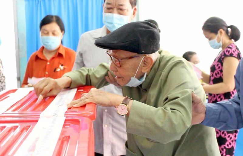 Cụ Mai Sơn Việt, ngụ phường Phú Cường, thành phố Thủ Dầu Một, tỉnh Bình Dương là một trong những cử tri tham gia trong cuộc tổng tuyển cử đầu tiên của nước ta. Và đây là lần thứ 15 trong đời, với tất cả tâm huyết, trách nhiệm, người cử tri lão thành tự hào trực tiếp cầm lá phiếu, hòa mình vào ngày hội lớn của non sông.