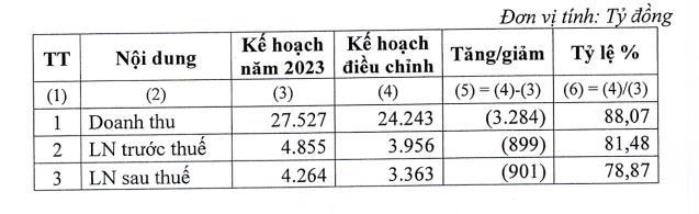 Lợi nhuận trước thuế và sau thuế được điều chỉnh, lần lượt giảm 899 tỷ (tương đương 19%) và 901 tỷ đồng (tương đương 21%) so với kế hoạch đề ra trước đó, chỉ còn 3.956 tỷ đồng và 3.363 tỷ đồng.