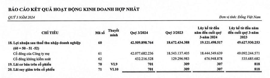 Về bức tranh tài chính, trong quý III/2024, công ty ghi nhận doanh thu thuần 57,6 tỷ đồng, gấp 3,2 lần cùng kỳ. Doanh thu thuần tăng mạnh do tăng doanh thu dự án. Bên cạnh đó, doanh thu hoạt động tài chính tăng 28% lên gần 7 tỷ đồng, chủ yếu do lãi tiền gửi, thu lãi cho vay và chậm thanh toán làm cho lợi nhuận tăng.
