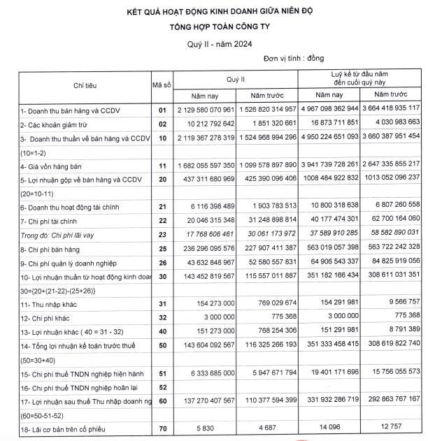 Công ty cổ phần Bóng đèn Phích nước Rạng Đông (mã ck: RAL) vừa công bố báo cáo tài chính quý II/2024.