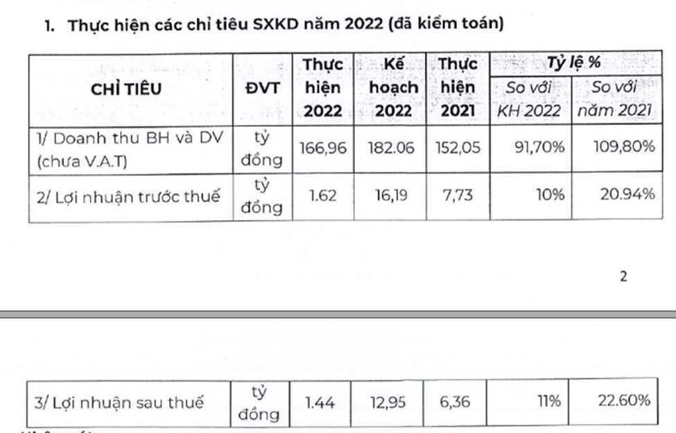 Ngoài ra, tại BCTC năm 2022, bên kiểm toán đã đưa ra ý kiến ngoại trừ liên quan đến một số công nợ có giá trị sổ sách tính đến cuối năm 2022 hơn 6 tỷ đồng, không đổi so với đầu năm.