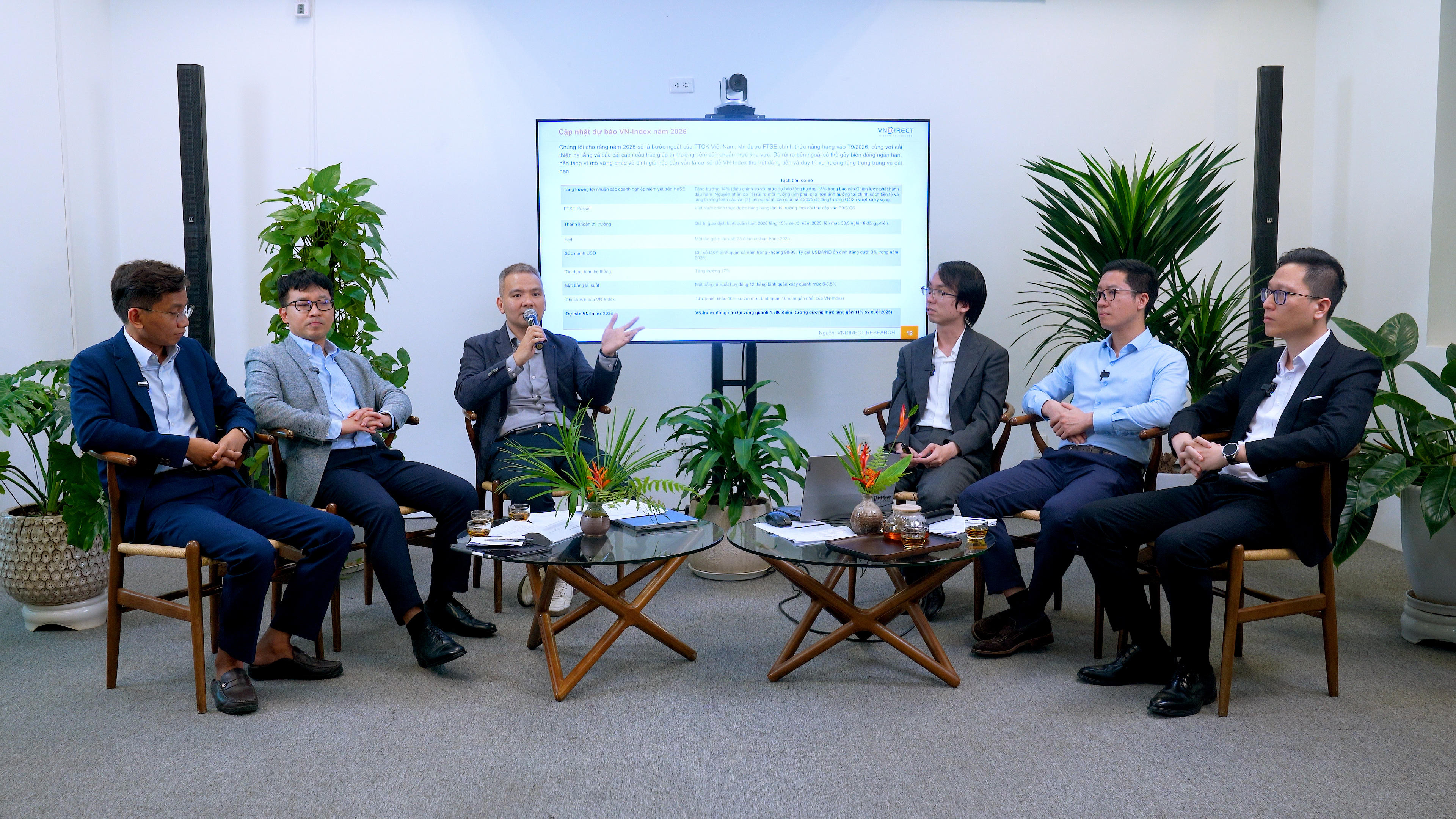 Tại chương trình tọa đàm Dinsights - La bàn đầu tư do VNDIRECT tổ chức ngày 7/4, bức tranh toàn cảnh về kinh tế vĩ mô và thị trường tài chính đã được phân tích chuyên sâu. Sự kiện có sự tham gia bình luận của các chuyên gia uy tín trên thị trường, bao gồm ông Nguyễn Vũ Long (Tổng Giám đốc VNDIRECT), ông Hoàng Việt Phương (Giám đốc Khối Nghiên cứu và Tư vấn đầu tư VNDIRECT), ông Đinh Quang Hinh (Giám đốc Vĩ mô và Chiến lược thị trường VNDIRECT), ông Trần Ngọc Báu (Nhà sáng lập kiêm CEO Wigroup), ông Mai Cường (Giám đốc Khối đầu tư PVIAM) và ông Lê Minh (Trưởng phòng đầu tư IPA Partners).
