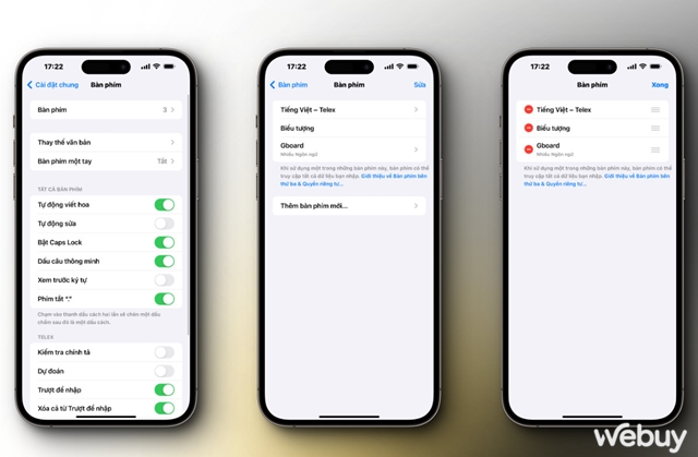 Để vô hiệu hóa các bàn phím của bên thứ ba, bạn hãy mở Cài đặt và truy cập vào Cài đặt chung > Bàn phím > Bàn phím. Danh sách các ứng dụng bàn phím đã cài đặt sẽ xuất hiện, bạn hãy nhấn vào "Sửa" và nhấn lần lượt vào các tên bàn phím cần xóa.