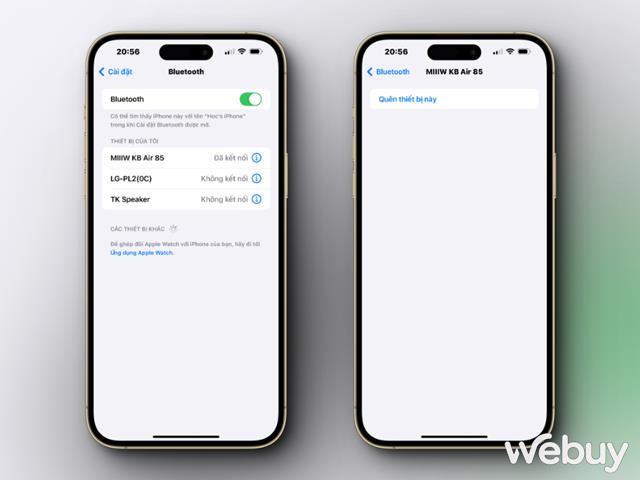 Để ngắt kết nối bàn phím Bluetooth với iPhone, bạn hãy mở ứng dụng Cài đặt lên và nhấn vào Bluetooth. Danh sách các thiết bị kết nối Bluetooth với iPhone hiện ra, bạn hãy nhấn vào nút thông tin bên cạnh tên dòng bàn phím Bluetooth mình đang dùng và nhấn vào "Quên thiết bị này" để ngắt kết nối.