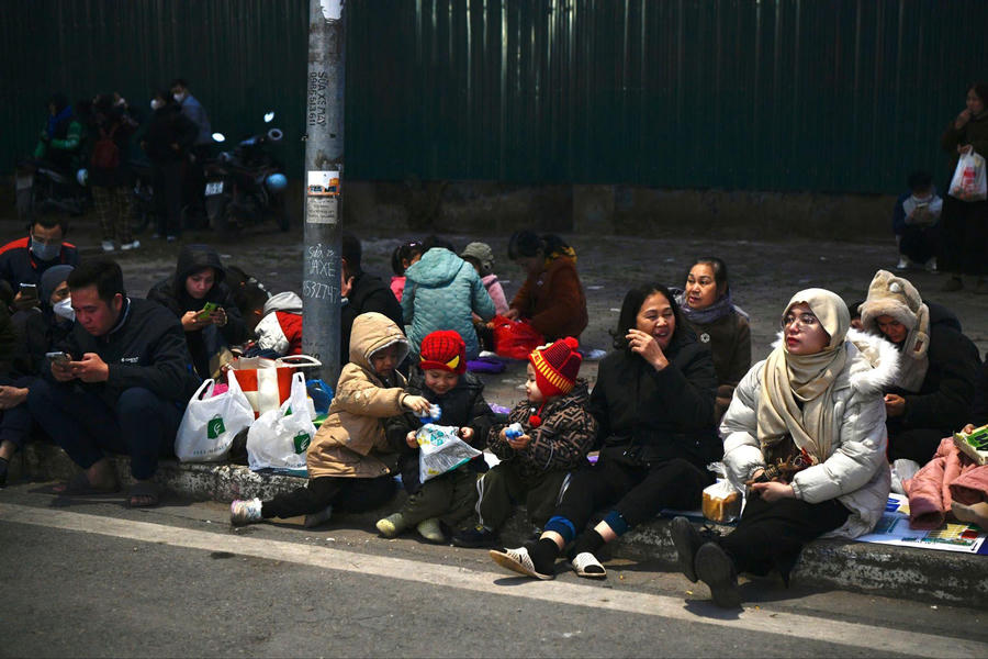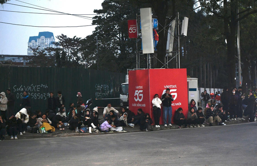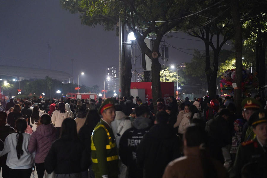 Chiều 23/1, trong cái rét 10 độ C, khu vực Sân vận động Quốc gia Mỹ Đình đã rộn ràng khác thường. Từng dòng người đổ về quanh sân, tay cầm cờ, háo hức chờ đợi đại nhạc hội đặc biệt “Dưới lá cờ vẻ vang của Đảng” diễn ra 20h tối nay.