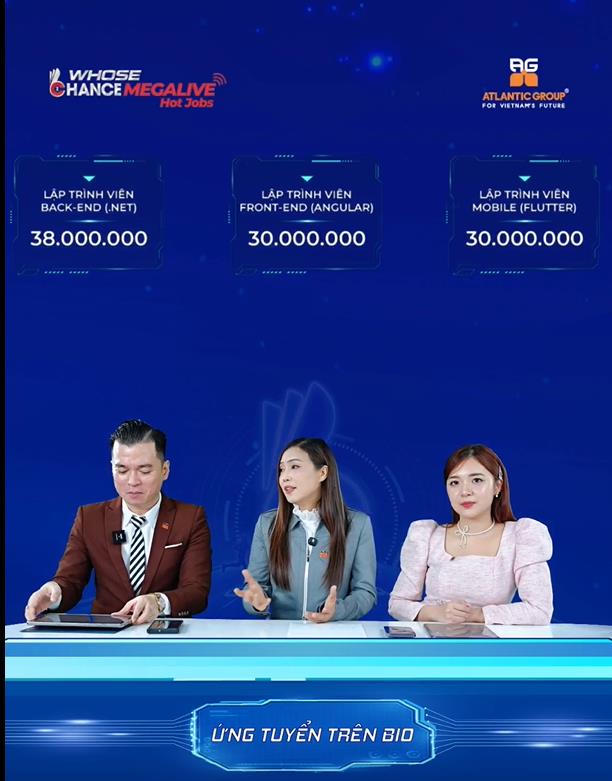 Chưa dừng lại ở đó, chương trình Whose Chance Megalive Hot Jobs còn thu hút ứng viên nhờ việc công khai mức lương và đãi ngộ của hàng loạt công việc. Đặc biệt, có những vị trí với mức lương hấp dẫn, lên đến 38 triệu đồng/tháng, như vị trí lập trình viên Back-end tại Atlantic Group.