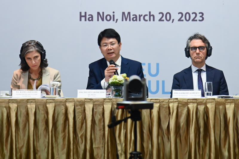 Phát biểu tại Diễn đàn, Đại sứ Liên minh Châu Âu Giorgio Aliberty cho biết trong khuôn khổ Dự án Cổng kết nối toàn cầu (Global Gateway), EU sẵn sàng hỗ trợ Việt Nam hoàn thành tốt công cuộc chuyển đổi số trong lĩnh vực tư pháp. Ông Aliberty cũng bày tỏ phía EU mong muốn tiếp tục hợp tác với Bộ Tư pháp, các Bộ ngành và các cơ quan liên quan, các tổ chức, các cơ quan của Liên hợp quốc và các tổ chức phi chính phủ trong giai đoạn hai của EUJULE.