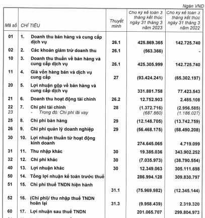 Tỷ suất lợi nhuận thuần từ hoạt động kinh doanh được cải tiến đáng kể tăng từ 3% lên 65% cho kỳ kinh doanh Quý 1 năm 2023. Tuy nhiên, mức lợi nhuận kế toán trước thuế và sau thuế lại giảm so với cùng kỳ.