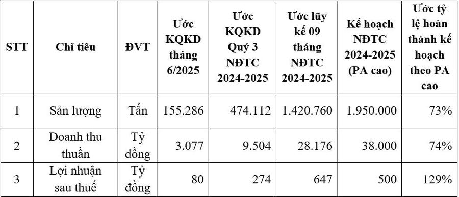 Lũy kế 09 tháng NĐTC 2024 - 2025 (từ ngày 01/10/2024 đến ngày 30/6/2025), sản lượng hợp nhất HSG ước đạt 1.420.760 tấn, hoàn thành 73% kế hoạch; doanh thu hợp nhất HSG ước đạt 28.176 tỷ đồng, hoàn thành 74% kế hoạch; lợi nhuận sau thuế hợp nhất HSG ước đạt 647 tỷ đồng, hoàn thành 129% kế hoạch lợi nhuận đã đề ra ở phương án cao. Kết quả này đã đưa giá trị sổ sách của HSG đạt 18.660 đồng/cổ phiếu, củng cố niềm tin cho cổ đông và nhà đầu tư.