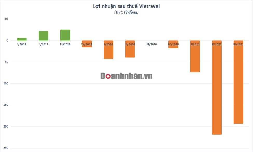 Đại dịch COVID-19 đã ảnh hưởng nặng nề đến 2 lĩnh vực kinh doanh chính của Vietravel là du lịch và hàng không. Doanh thu 9 tháng của doanh nghiệp lữ hành giảm đến 59% xuống 606 tỷ đồng. Trong đó, doanh thu dịch vụ du lịch lữ hành giảm từ 917 tỷ đồng xuống 141 tỷ đồng, doanh thu bán vé máy bay giảm từ 351 tỷ xuống 251 tỷ đồng.