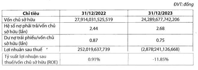 Bên cạnh đó, vốn chủ sở hữu đi lùi 13%, còn hơn 24.000 tỷ đồng. Hệ số nợ trên vốn chủ tăng từ 2,44 lần lên 2,68 lần, tương đương tổng nợ gần 65.100 tỷ đồng. Trong đó, hơn 18.000 tỷ đồng là nợ trái phiếu. Tuy nhiên, thời điểm hiện tại Công ty đã sạch nợ trái phiếu.
