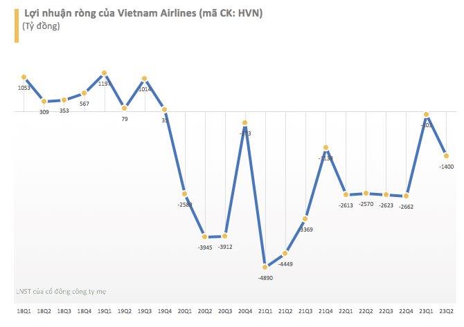 Quý 2/2023, Tổng Công ty Hàng không Việt Nam - CTCP (HVN) ghi nhận doanh thu thuần 20.565 tỷ đồng, cao hơn 12% so với cùng kỳ năm ngoái, nhờ sản lượng vận chuyển tăng 23,6% nhờ thị trường khu vực châu Âu, Úc và Mỹ phục hồi tốt. Tuy nhiên gánh nặng chi phí khiến hãng hàng không quốc gia vẫn chịu lỗ ròng gần 1,4 ngàn tỷ đồng, đánh dấu quý lỗ thứ 14 liên tiếp.