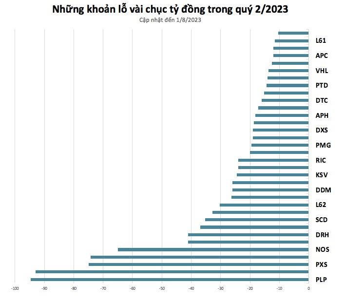 Hiện đang có khoảng gần 100 doanh nghiệp niêm yết công bố tình hình kinh doanh thua lỗ trong quý 2/2023, tuy nhiên trong đó có khoảng 15% là các khoản lỗ nhỏ, dưới 1 tỷ đồng, khoảng 43% số doanh nghiệp có mức lỗ dưới 10 tỷ đồng.