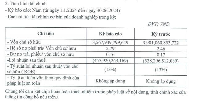 Về kết quả kinh doanh, trong 6 tháng đầu năm 2024, Nhiệt điện Thăng Long báo lỗ sau thuế gần 458 tỷ đồng, trong khi cùng kỳ năm trước báo lỗ sau thuế 528,2 tỷ đồng.