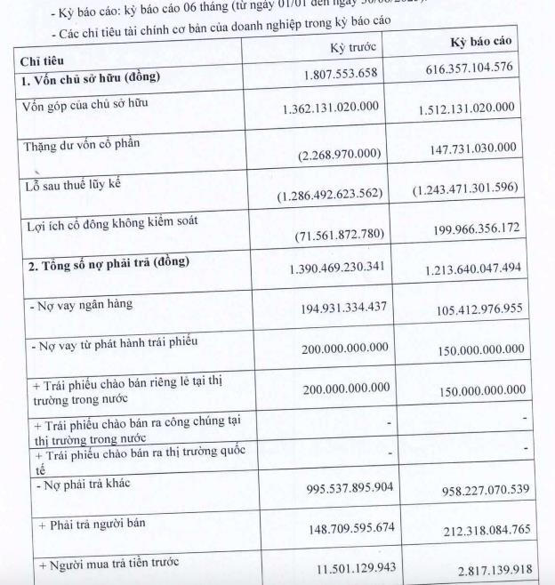 Tổng nợ phải trả giảm về 1.213 tỷ đồng, trong đó nợ vay ngân hàng ghi nhận khoản hơn 105,4 tỷ đồng, giảm 45,9% so với kỳ trước; nợ phải trả khác hơn 958,2 tỷ đồng, giảm nhẹ 3,7%; nợ vay từ phát hành trái phiếu 150 tỷ đồng, giảm 25% so với kỳ trước.