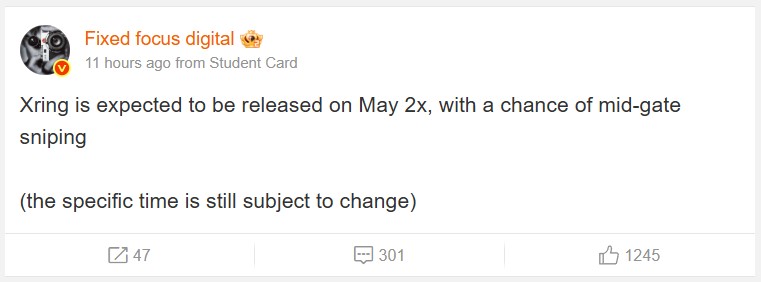 Trước đó, các báo cáo đã đề cập rằng Xiaomi Xring sẽ được ra mắt vào cuối năm nay, nhưng sẽ không tận dụng quy trình sản xuất 3nm thế hệ thứ hai của TSMC như Snapdragon 8 Elite hoặc Dimensity 9400. Trên Weibo, tài khoản Fixed Focus Digital tiết lộ rằng Xring của Xiaomi sẽ được công bố vào 'ngày 2x tháng 5', cho thấy con chip tùy chỉnh này có thể được công bố vào ngày 20 tháng 5 hoặc muộn hơn. Người này cũng đề cập rằng ngày ra mắt có thể thay đổi, điều đó có nghĩa là chúng ta nên chuẩn bị tinh thần để nhận được tất cả chi tiết vào một thời điểm sau đó.