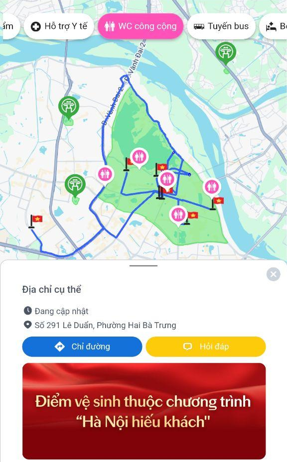 - Nhóm huy động các trụ sở cơ quan, trường học, bệnh viện, nhà dân… cho người dân trên phố sử dụng miễn phí, bố trí ở các tuyến phố phụ cận khu vực trung tâm. Nhóm này gồm khoảng 400 nhà vệ sinh. Nhóm này có địa chỉ cụ thể.