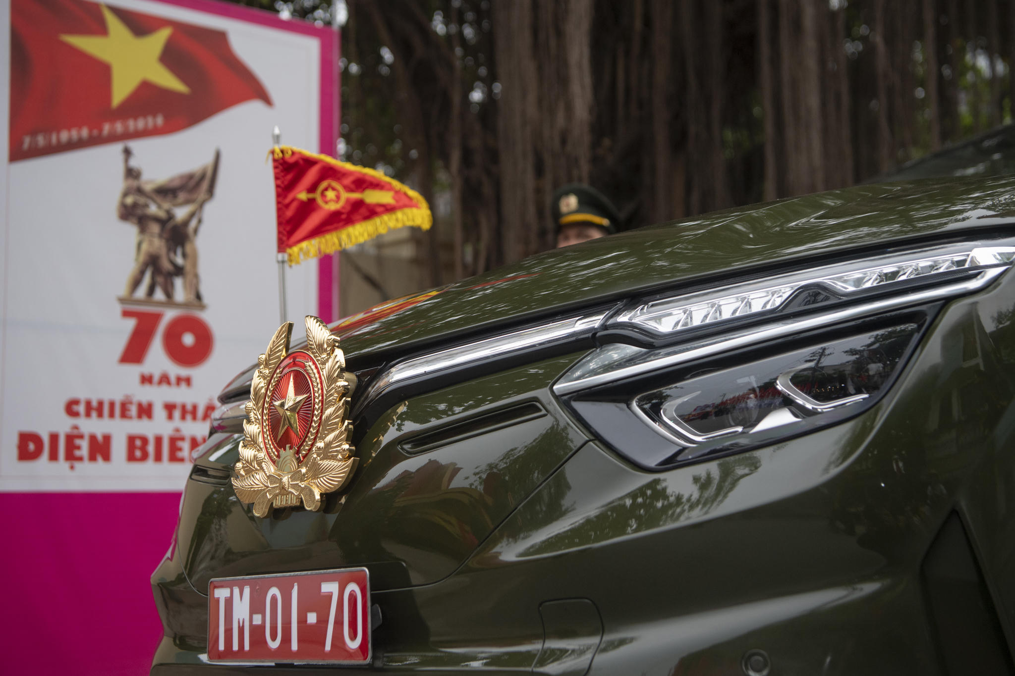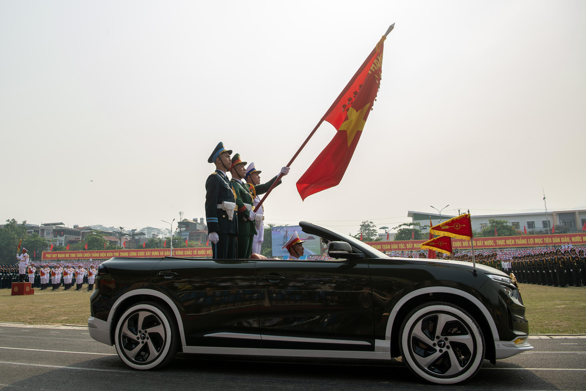 Lễ diễu binh, diễu hành kỷ niệm 70 năm Chiến thắng lịch sử Điện Biên Phủ "lừng lẫy năm châu, chấn động địa cầu" đã diễn ra sáng 7/5/2024 tại thành phố Điện Biên Phủ, tỉnh Điện Biên. Tại sự kiện kỷ niệm mốc son chói lọi trong lịch sử dân tộc, những chiếc VinFast VF 8 mui trần đã được lựa chọn để trở thành xe chỉ huy, xe tổ Quân kỳ.