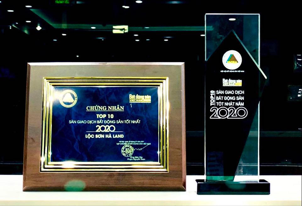 Với những thành quả và sự đóng góp cho thị trường bất động sản cũng như cho cộng đồng, Lộc Sơn Hà Land đã vinh dự được trao tặng danh hiệu Top 10 sàn giao dịch bất động sản tốt nhất năm 2020. Giải thưởng mang tầm quốc gia đã phần nào khẳng định uy tín và giá trị thương hiệu mà Lộc Sơn Hà đã và đang gầy dựng. Đây cũng là sự ghi nhận của khách hàng, cộng đồng và giới chuyên gia đến sự cống hiến của Lộc Sơn Hà trong việc đưa thị trường bất động sản phát triển tốt hơn.
