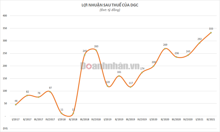 Tính riêng quý II/2021, lợi nhuận sau thuế của Hóa chất Đức Giang đã tăng 24% so với cùng kỳ, lên mức 333 tỷ đồng, cao nhất trong một quý kể từ khi hoạt động.