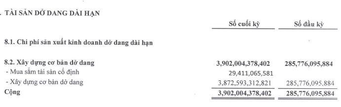 Điểm đáng lưu ý, đầu năm chi phí dở dang dài hạn chỉ 285,7 tỷ đồng nhưng cuối quý III/2025 đã là 3.902 tỷ đồng.