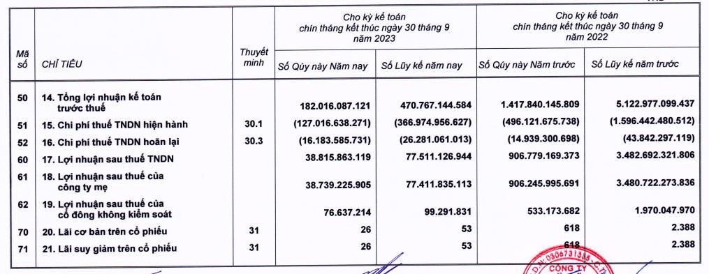 Tính riêng chuỗi Bách hóa Xanh, lợi nhuận 9 tháng đầu năm 2023 ghi nhận lỗ 904,9 tỷ đồng, nâng tổng lỗ lũy kế từ năm 2016 tới 2023 lên 8.299,87 tỷ đồng.
