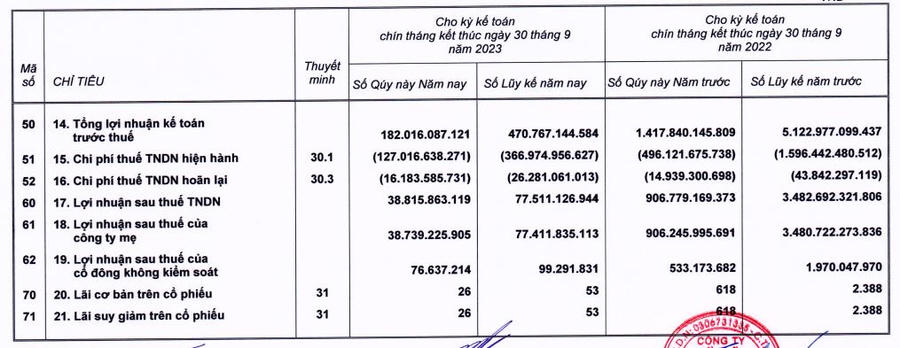 Vốn chủ sở hữu giảm nhẹ về 23.270 tỷ đồng, bao gồm lợi nhuận sau thuế chưa phân phối là 8.070 tỷ đồng.