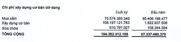 Các khoản phải thu dài hạn ghi nhận hơn 836 tỷ đồng thời điểm cuối năm trong khi đầu năm không ghi nhận. Đáng chú ý, tài sản dở dang dài hạn tăng vọt gấp 2,7 lần lên mức 184,3 tỷ đồng. Nguyên nhân chủ yếu do mảng xây dựng cơ bản tăng lên 108,1 tỷ đồng, trong khi đầu năm ghi nhận ở 1,8 tỷ đồng.