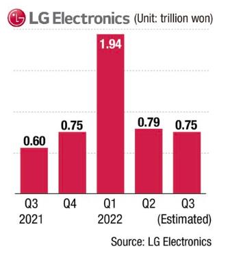 Giới chuyên gia nhận định, nhu cầu tiêu thụ TV - ngành kinh doanh hàng đầu của LG và thiết bị gia dụng tăng chậm do chi phí nguyên vật liệu và hậu cần tăng cao. Đây là lần đầu tiên lợi nhuận hàng quý của LG giảm sút trong 28 quý qua.