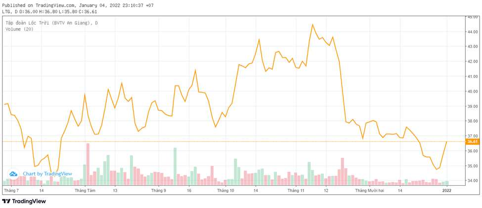 Cổ phiếu LTG trên thị trường ngay lập tức phản ứng tiêu cực với thông tin doanh nghiệp mất một nhà cung cấp lớn khi liên tục lao dốc từ vùng đỉnh hồi trung tuần tháng 11. Cổ phiếu này có thời điểm đã xuống dưới 35.000 đồng/cổ phiếu vào cuối tháng 12, ghi nhận mức giảm gần 22% sau hơn 1 tháng tương ứng vốn hóa “bốc hơi” gần 800 tỷ đồng.