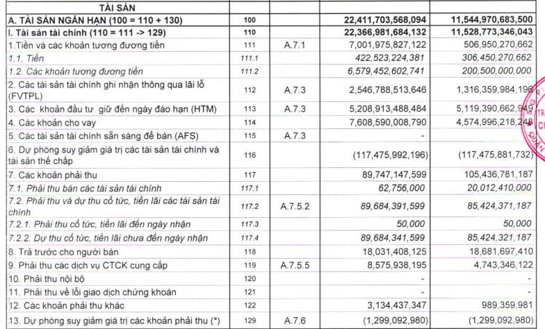 Quy mô các tài sản tài chính FVTPL tăng mạnh 93% lên gần 2.547 tỷ đồng, bao gồm đầu tư vào cổ phiếu và trái phiếu. Công ty cũng đầu tư gần 5.209 tỷ đồng vào các khoản đầu tư vào tài sản HTM, tăng nhẹ so với đầu năm.
