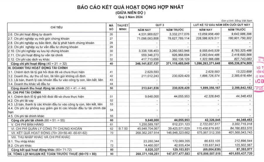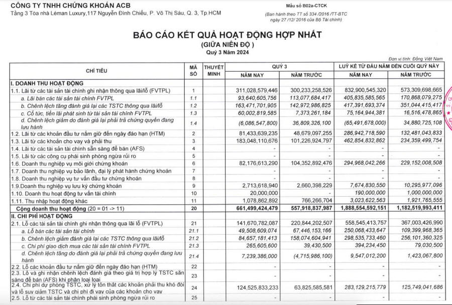 Lợi nhuận quý III/2024 của Chứng khoán ACB (ACBS) tăng tới 81,4% lên gần 217 tỷ đồng