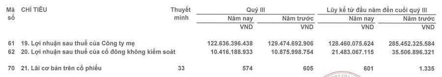 Vốn chủ sở hữu tính đến ngày 30/9 tăng nhẹ lên 3.995 tỷ đồng, lợi nhuận sau thuế chưa phân phối là 1.296 tỷ đồng.